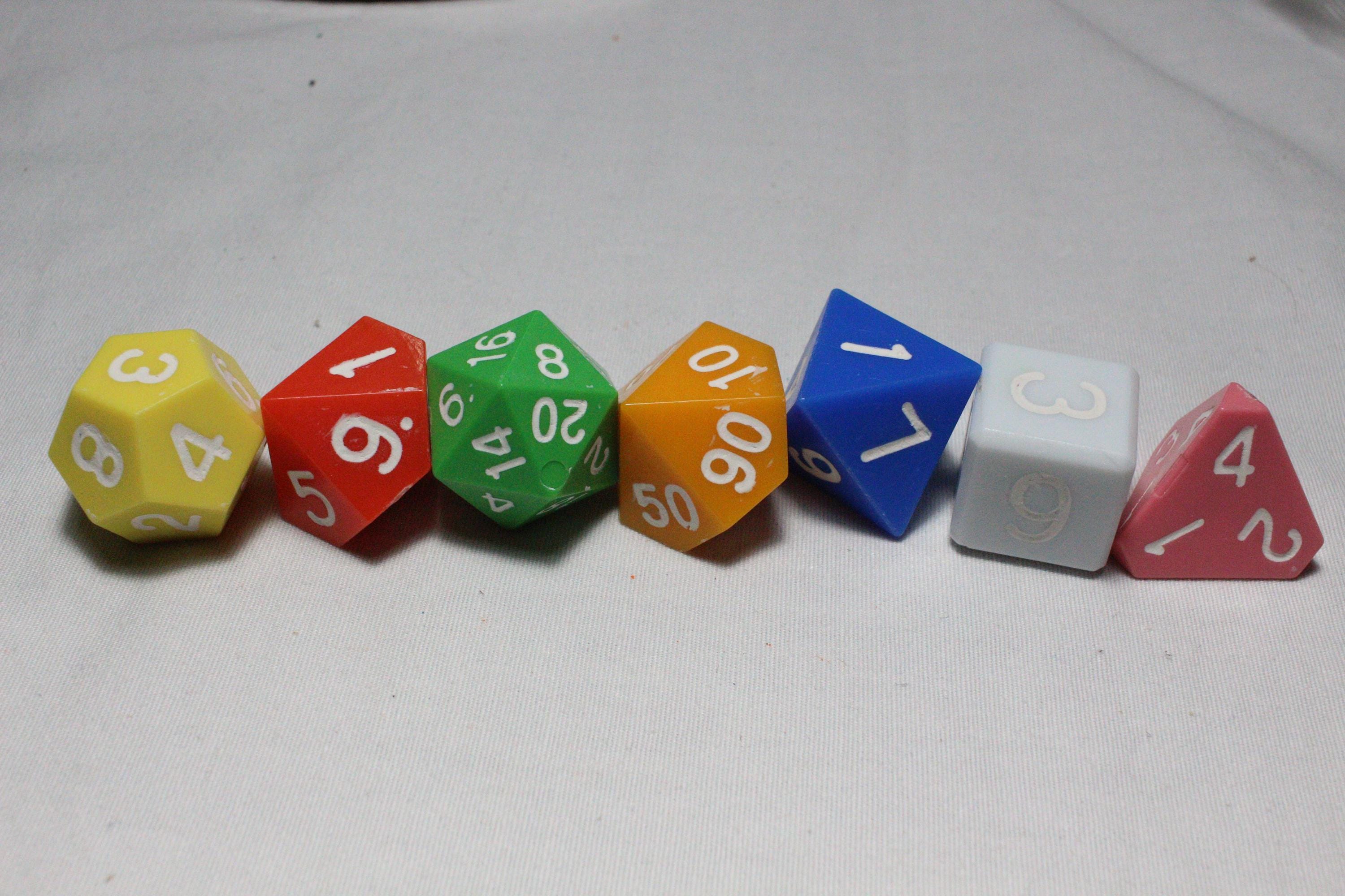 Set of seven dice (Colors of dice will be random) White Waxed
