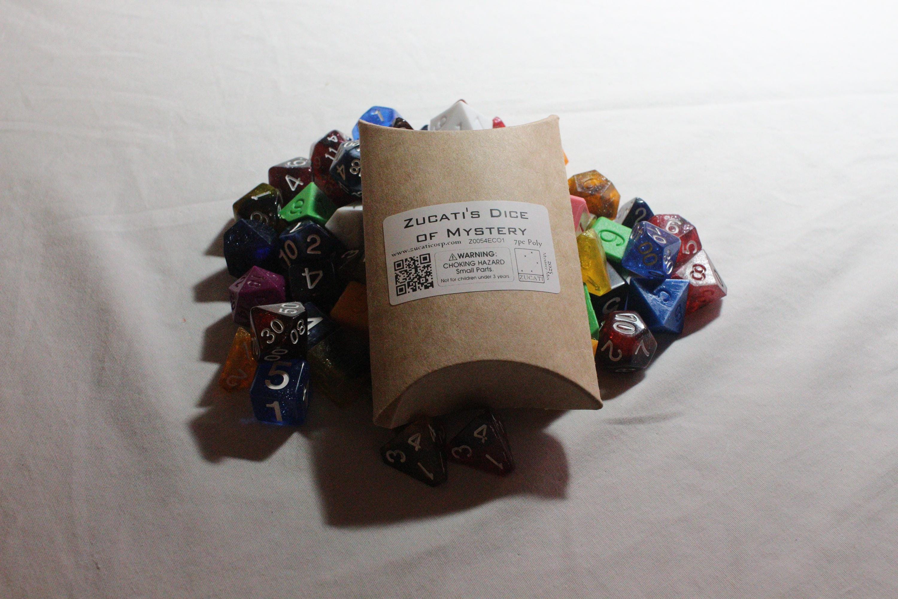 Mystery set of 7 polyhedral dice whether a complete set or a totally random color combination.